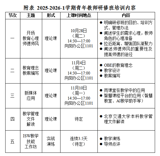 附表:2025-2026-1学期青年教师教学研修班培训内容