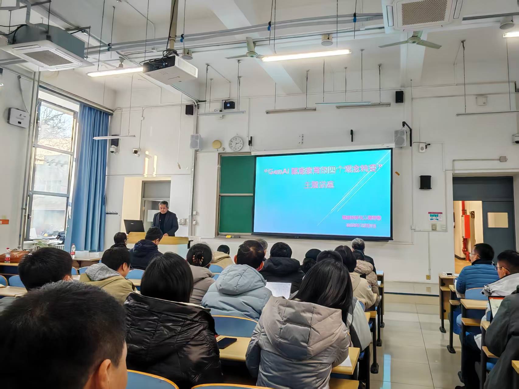 2025年12月9日下午,教师发展中心联合物理工程学院教师发展分中心成功举办了AI赋能系列培训“GenAI赋能教育的四个观念转变”主题讲座。本次讲座由北京大学国家智能社会治理(教育)特色实验基地主任汪琼教授主讲,物理工程学院副院长彭继迎主持,全校近80名教师参加了本次活动。