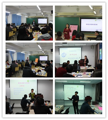 主讲教师范玲和冯瑞玲介绍了课堂教学的重要性、课堂讲授的基本方法、课堂管理的技巧和课堂互动交流,指出了课堂管理中常见的问题及解决办法,强调在课堂讲授中要改变“满堂灌”的传统教学模式,增强课堂教学吸引力,追求教学感染力,牢记引发学生兴趣比讲授知识更重要。最后学员们就“课堂中常见情景”及“心目中教学很棒教师的特点”进行了热烈讨论。